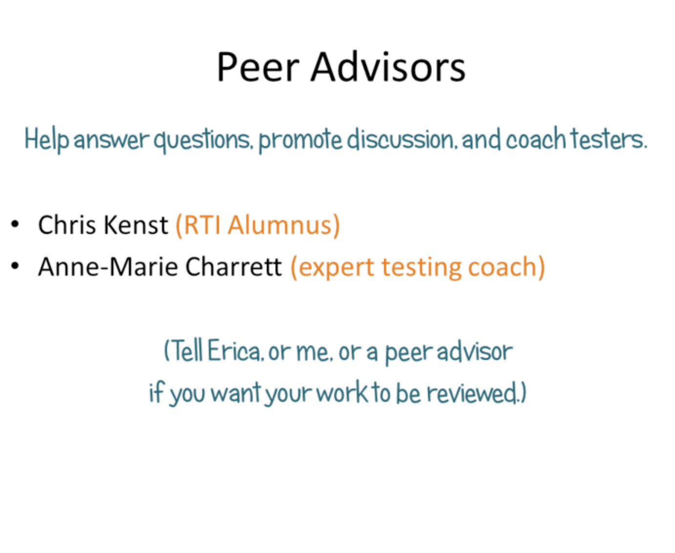 In addition to teaching through the AST, I have had the privilege to teach BBST alongside Cem Kaner on a few occasions. As a Rapid Software Testing alumnus I also have occasionally volunteered to peer review James Bach's online classes.