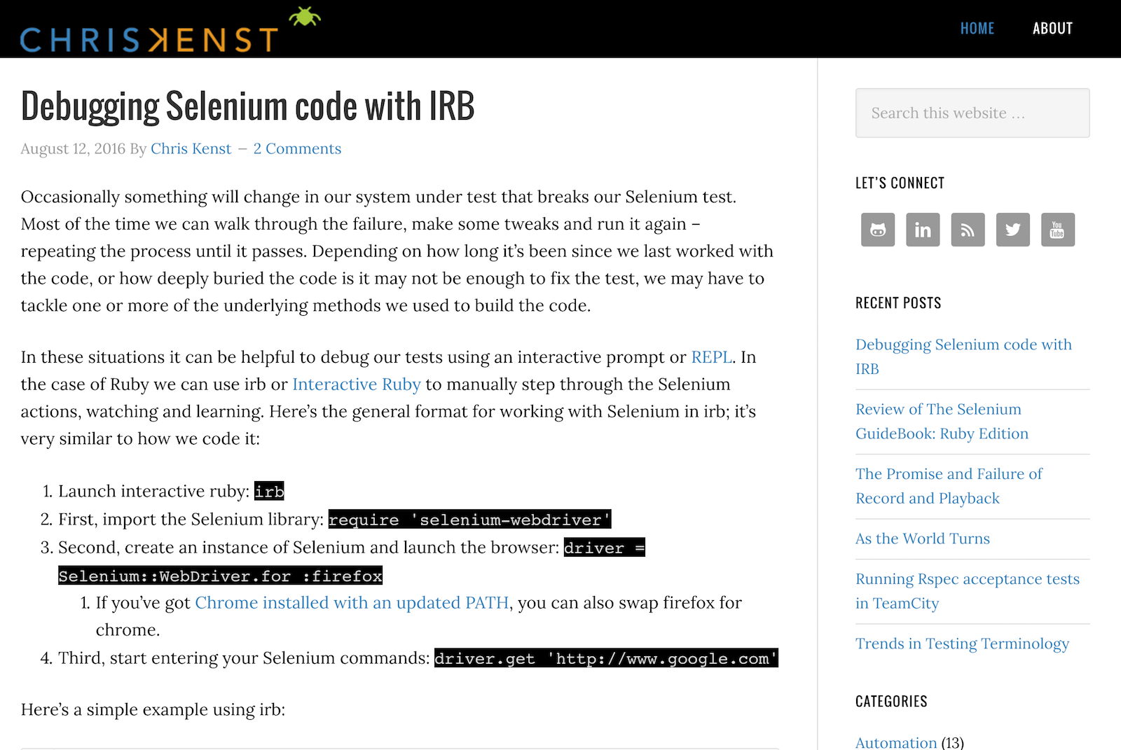 There’s something fun about web development. Something fun with trying to build a website from the ground up or tinkering with a template with it until it fits my needs (like this site), building a Jekyll site from the ground up to display a list of software testing conferences or even a Rails app (I want to build more of these as well).