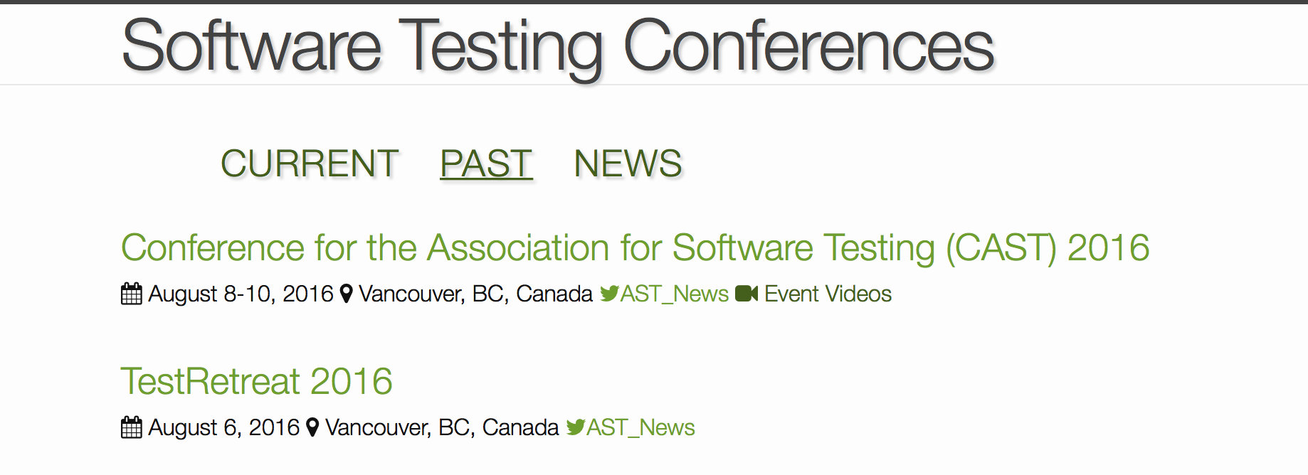 I’m always tinkering and testing new customizations. Software Testing Conferences just got an update that includes: